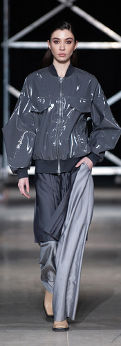 Дизайнеры вновь делают акцент на стеганных элементах, которые применяют в комбинациях с различными материалами: бархатом, шерстью, твидом. Vorozhbyt&Zemskova решили, что не стоит ограничиваться только плащевкой. Многослойность предоставила возможность сыграть на контрастах, поэтому часто возникают комбинации мягкости со строгостью, как, например, в сочетании эко меха с холодным эко лаком. Жесткость и решительность характера big city girl было решено подчеркнуть пиджаками и блузами из мужской костюмной ткани, предавая образу некой маскулинности. Большой город нашел свое отображение и в силуэтах коллекции – они довольно массивные: широкие плечи, большие объемы, крупные детали. Стоит обратить внимание, как дизайнеры обыгрывают излюбленную металлическую фурнитуру – в этот раз используются застежки фастекс, которые менее деликатны в сравнении с ординарными вариантами.